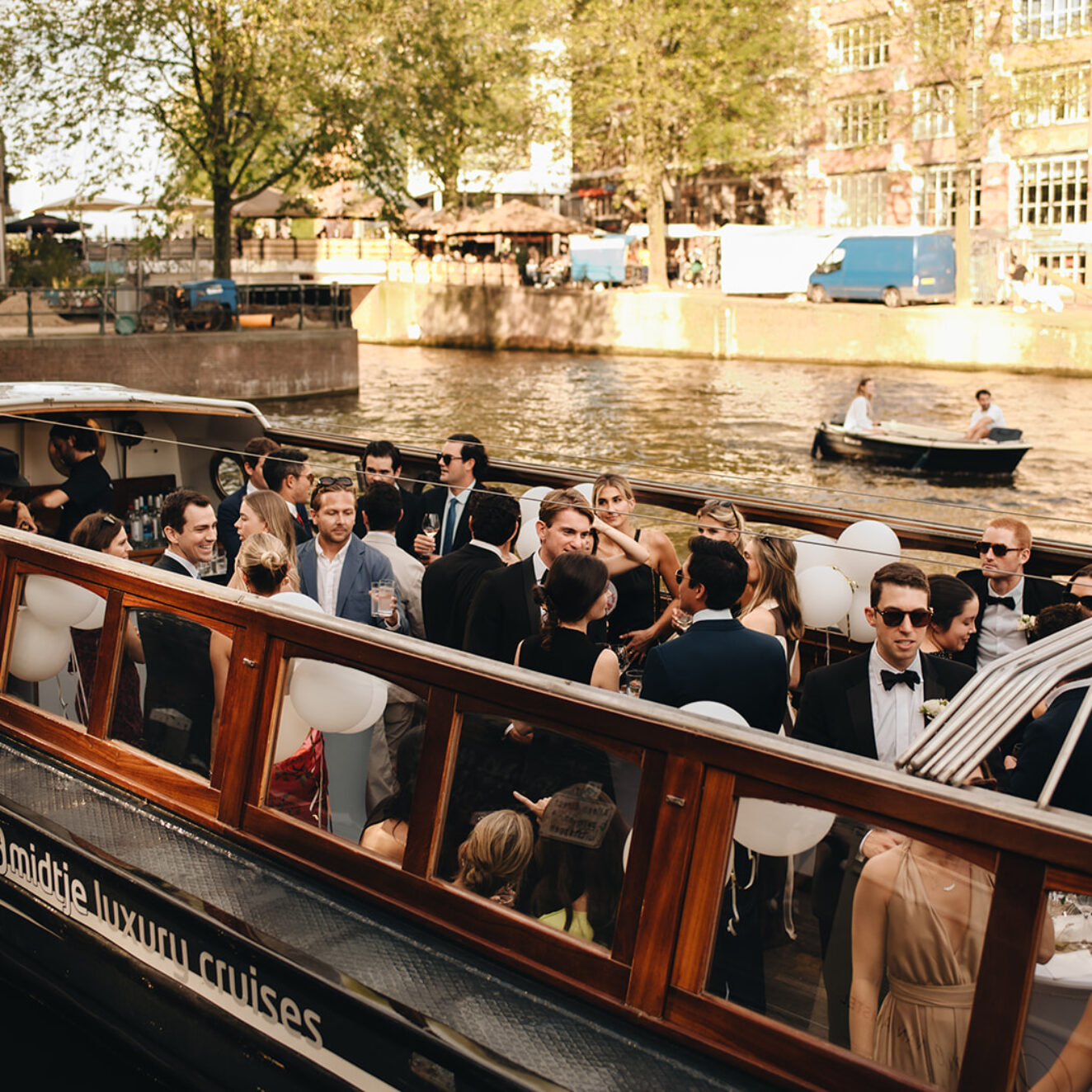 Onze klassieke schepen zijn heuse evenementen boten waarop alles mogelijk is: Een feest met dj, een operazangeres, een lopend buffet, een diner aan gedekte tafels, een vergadering, een workshop of hei-dag. En dat allemaal staand of zittend, actief of passief; het kan allemaal. Op warme, zonnige dagen kunnen de daken van deze schepen helemaal worden opengetrokken voor een fantastische open uitzicht met een briesje door de haren.