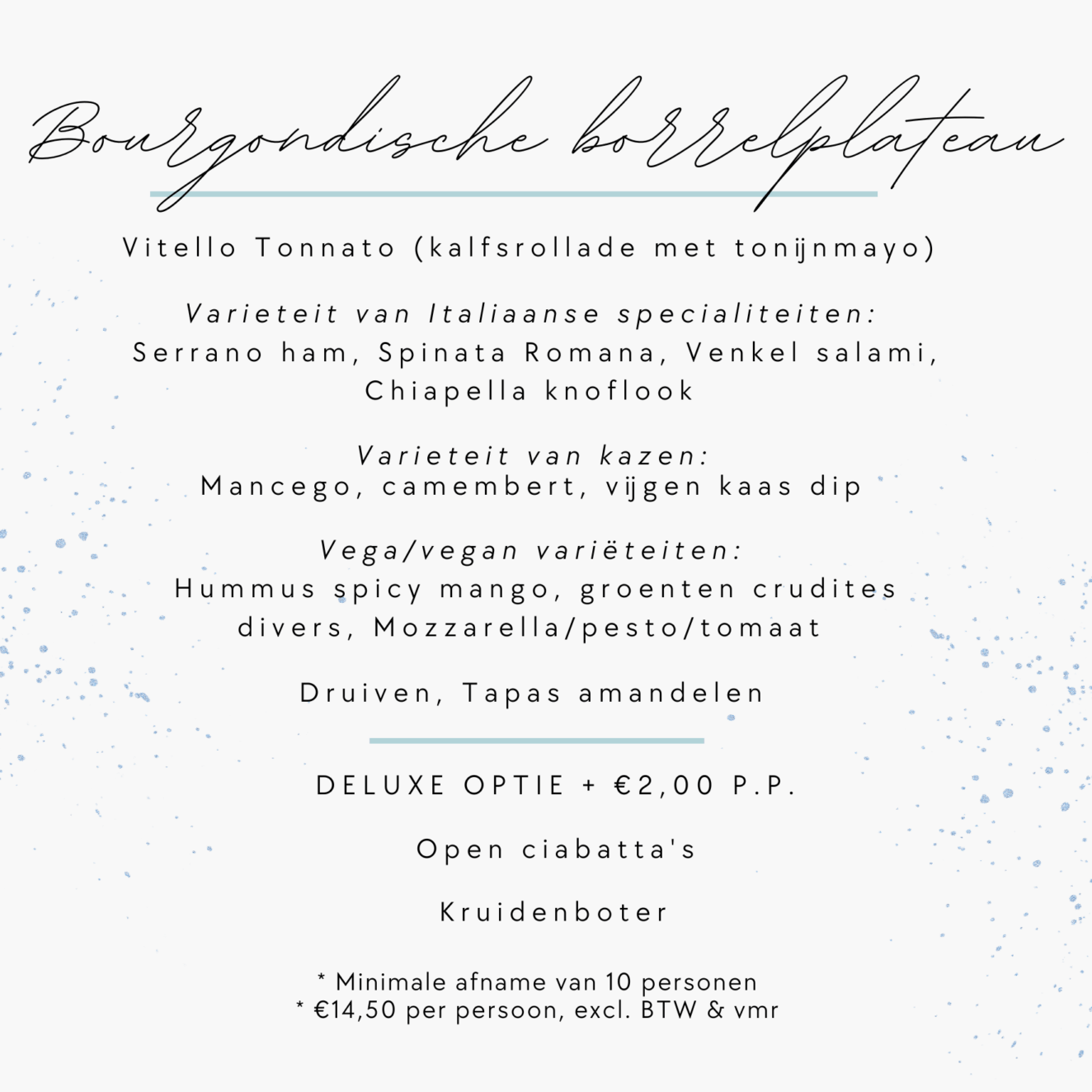 Heeft u specifieke wensen voor uw borrel? Bespreek ze gerust met ons — alles is mogelijk om uw boottocht tot in de puntjes te verzorgen.